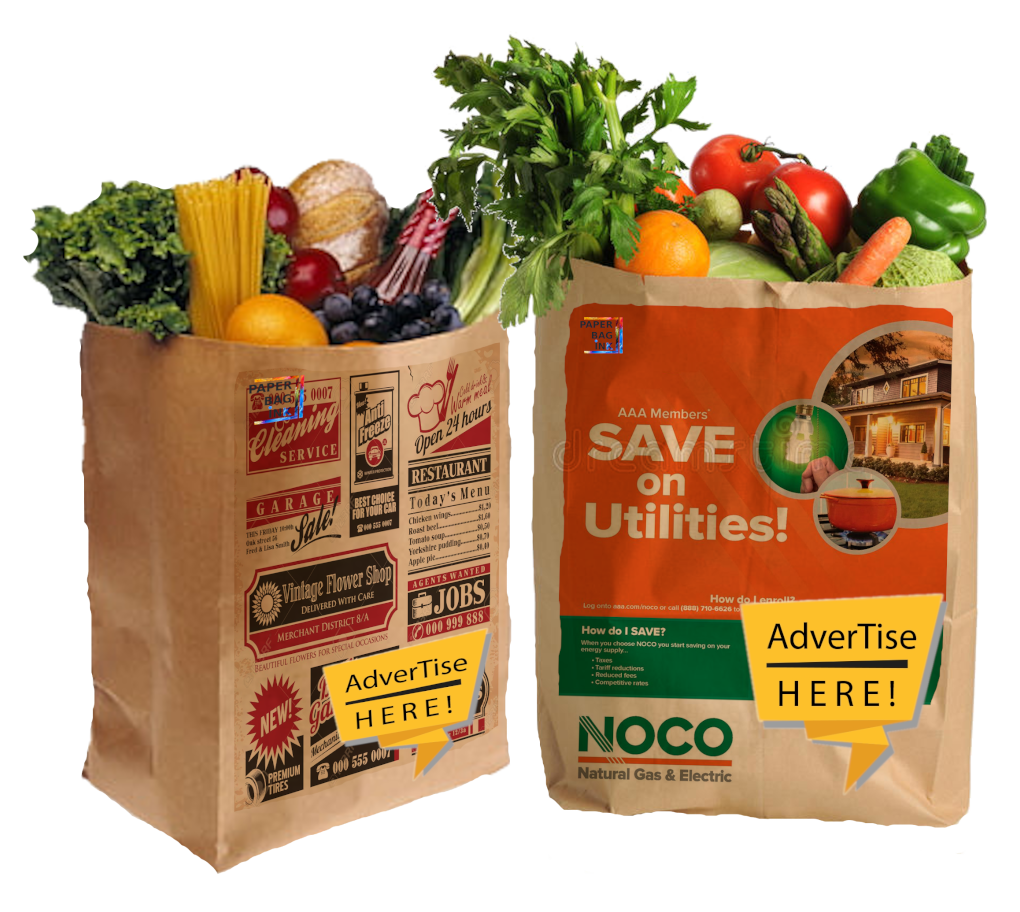 - For Big / Medium Bags: 4X4 inch Ad on one side of bag shared with other Ads